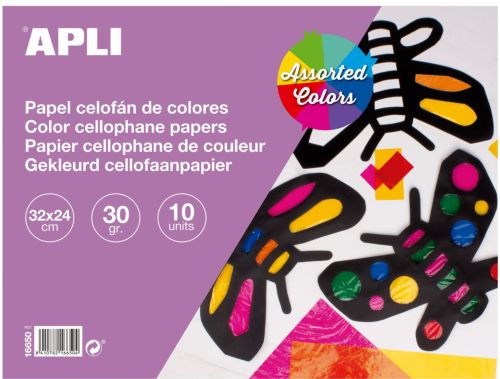 Bloc de papel celofán de 30 g/m² tamaño 32 x 24 cm. Cada bloc contiene 10 hojas en colores surtidos: amarillo (1 hoja), transparente (2 hojas), naranja (1 hoja), rosa (1 hoja), rojo (2 hojas), azul (2 hojas) y verde (1 hoja). Ideales para todo tipo de manualidades, scrapbooking, cubiertas, separadores, papiroflexia, etc